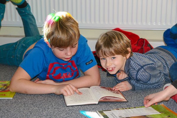 Damit die richtigen Bücher in aller Ruhe ausgesucht werden können, haben die Klassen 30 Minuten Zeit, ihre Auswahl zu treffen. Diese Zeit kann man natürlich auch schon nutzen, um bereits im gewählten Buch zu lesen.